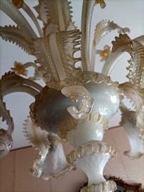Splendido lampadario in vetro di Murano in perfette condizioni, comprende 6 punti luce e decori floreali dorati. Ritiro sul posto (Grugliasco -TO).