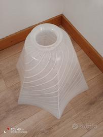 Lampadario a sospensione in vetro di Murano striato bianco, a forma di campana, anni '60. Indicato per vari ambienti: sala, cucina, camera da letto