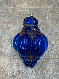 Lampadario in vetro di Murano blu usato
