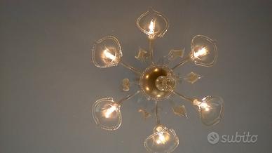 Vendo splendido lampadario in vetro di Murano in tutto oro, a 6 luci, prodotto da rinomata fornace di Murano. Condizioni perfette, praticamente nuovo. Regalo anche qualche pezzo di ricambio, prodotto sempre dallo stesso mastro vetraio. Acquistato al prezzo di 2.300,00 euro. Se di interesse vendo, ad un prezzo da concordare, anche 4 applique abbinati al lampadario sempre della stessa manifattura del lampadario e prodotti sempre dallo stesso mastro vetraio.