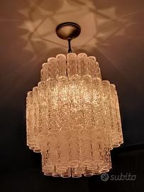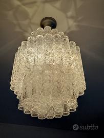 Vendo, lampadario vintage, in vetro, stile Venini, causa cambio lampadario dopo aver acquistato casa. Il lampadario è in buonissime condizioni, l’unica cosa che mentre lo smontavo ho notato che mancavano 2 vetrini in fondo ma non si nota nulla….