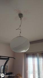 lampadario a boccia in vetro con motivo di disegno anni 80, diametro cm 40. perfette condizioni