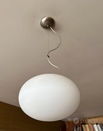 Lampadario contemporaneo di design in vetro opalino e metallo.