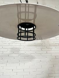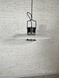 Lampadario industrial, anni '70. Design minimalista con struttura in metallo nero e diffusore a disco bianco. Ø50 Questo articolo vintage, potrebbe avere lievi segni di utilizzo. Ritiro in sede a Padova, possibilità di spedizione da concordare.