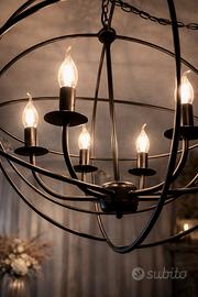Bellissmo lampadario stile Industrial moderno con lampadine simili a candele ma a basso consumo. L’effetto in un ambiente è garantito .