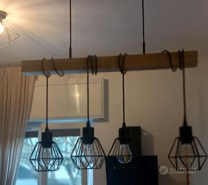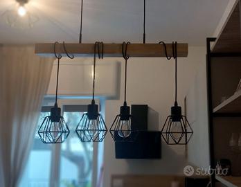 Lampadario stile Industriale in legno e metallo comprese le lampadine