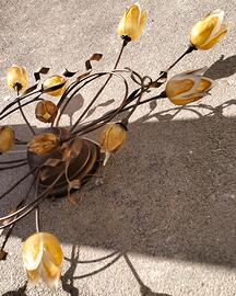 Vendo lampadario inferro battuto Stile Fiorentino a forma di fiori Vetro soffiato, spesso di Murano, in tonalità ambra, giallo o "caramello" stile vintage