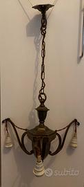Lampadario a sospensione in ottone, di manifattura inglese, inizi XX secolo (primi ’900).