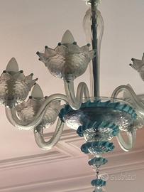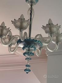 Lampadario di Murano azzurro mare a 6 lampade (anche con lampade led) - perfetto, nessuna parte mancante, nessun difetto. Particolarmente adatto a case al mare o in campagna. È un pezzo davvero molto bello. Per la consegna preferisco non affidarlo al corriere per la delicatezza dell'oggetto. Posso collaborare per il montaggio ma è comunque facilissimo