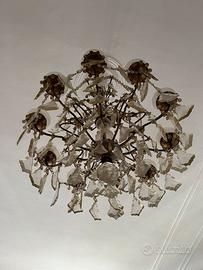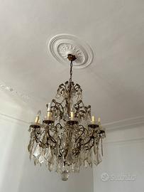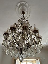 Lampadario originale del primo Novecento stile Maria Teresa, in ottone e cristallo a goccia. Perfettamente funzionante con 10 luci e in buone condizioni. Occasione per amanti del genere. Ritirabile a Milano.