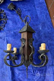 Lampadario da interni in ferro battuto per ambienti rustici.