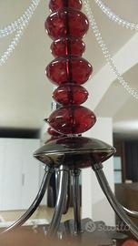 bellissimo e particolare lampadario a 5 luci della Irilux. lavorazione vetro soffiato inserti in acciaio dettagli color rubino prezzo originale 1040 prezzo attuale 400