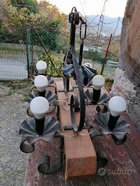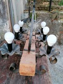 Vendo Lampadario a 6 luci in Legno e Ferro Battuto come da foto, non spedisco