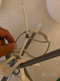 Lampada a sospensione con diffusore in polietilene stampato in rotazionale con struttura interna a sei luci montate su molle tensionate in acciaio. Cavo autoportante con anima in acciaio. Flusso luminoso diffuso nell’ambiente.