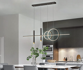 Lampada a Sospensione Moderna Dimmerabile per Tavolo da Pranzo Cucina Lampadario Anello Design con Telecomando Informazioni Design molto semplice ed elegante, trasuda un senso di semplicità e di moda straordinaria ovunque. Può fornire una luce confortevole e un'illuminazione piacevole, adatta a vari stili di decorazione e crea una piacevole atmosfera domestica. Dimensioni: L80cm, potenza: 30W / Dimensioni: L100cm, potenza: 33W / Dimensioni: L120cm, potenza: 36W, Materiale: alluminio + acrilico + gel di silice, Tensione: 220V. con una vita media di 50.000 ore. Grado di protezione: IP20, Dimensioni consigliate della stanza: 8-12㎡. Ci sono 3 modalità di luce: luce calda, luce naturale e luce bianca fredda. È possibile impostare facilmente la luminosità desiderata (8%-100%) e la temperatura di colore (3000K-6500K). Quando si spegne con il telecomando, l'ultima impostazione viene salvata. molto comodo. Filo per appendere 100 cm. Un ambiente perfetto per la vostra casa. Come lampada a sospensione per la sala da pranzo, per il soggiorno, in cucina o sopra il tavolo da pranzo, si può scegliere in base alle proprie esigenze.