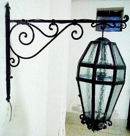stupendo lampadario lanterna in ferro pieno forgiato e battuto a mano con 4 luci, con colore e misure a scelta (nella foto nero da cm. 50 + catena x33 ). prezzo compreso kit per il montaggio