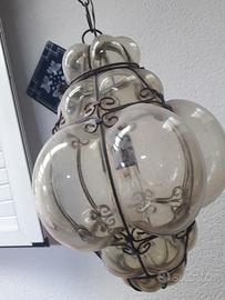 lampadario lanterna in vetro soffiato una luce dimensioni : diametro circa 30 cm. altezza circa 45 cm.