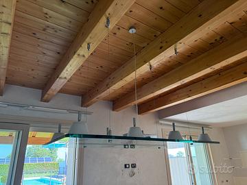 Lastra 8 è sospesa mediante 4 cavetti d'acciaio e altrettanti attacchi meccanici a soffitto in alluminio, con incorporata la regolazione rapida del cavo.