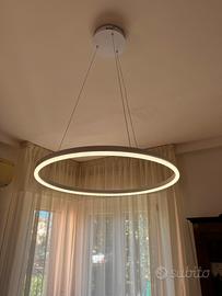 Lampadario a LED bianco in metallo con varie tonalità di illuminazione. Le principali sono bianco caldo, bianco freddo e neutra. È possibile accenderlo, spegnerlo e modificare la modalità di illuminazione e intensità di illuminazione tramite telecomando. Ognuna è impostabile per un illuminazione al 100% e al 25%. Presente la modalità per la sera con intensità luminosa al 50%. Si può regolare l'altezza tramite cavi. Adatto per salone, camera da letto, corridoio, bagno. Il diametro del cerchio dove è fissata la striscia led è di 60 cm, realizzato in metallo. Il pacco includerà: - 1X lampadario - Staffe, supporti e viti sufficienti per il montaggio. Nuovo, mai usato, sempre stato imballato, spedito accuratamente nella propria scatola originale. Prezzo trattabile, valuto offerte.