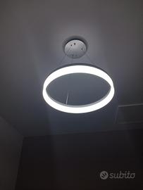 Lampadario moderno a LED argento con tonalita di illuminazione più calda e più fredda, più o meno intensa, controllabile da interruttore a muro. Altezza regolabile tramite cavi. Adatto per salone, camera da letto, corridoio, bagno. Il diametro del cerchio è di 50cm. Il pacco includerà: - 1X lampadario - Statte, supporti e viti sufficienti per il montaggio. Nuovo, mai usato, sempre stato imballato, spedito accuratamente nella sua scatola originale. Disponibile anche ritiro a mano. Prezzo trattabile. Valuto offerte.