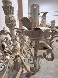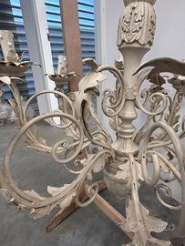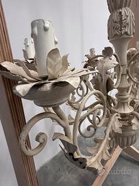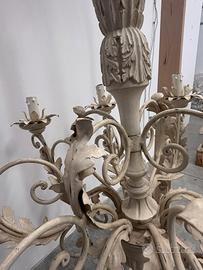 Questo sontuoso lampadario ha 8 luci ed è color crema.