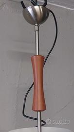 Il corpo centrale è sospeso su asta di acciaio telescopica che - tramite una vite a brugola - può regolare l'altezza totale dal soffitto a fine lampadario da minimo 70 cm a massimo 110 cm (circa).