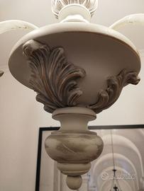 Lampadario in legno bianco decapato stile shabby chic con 3 bracci.