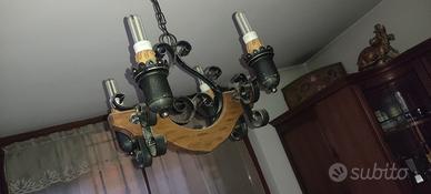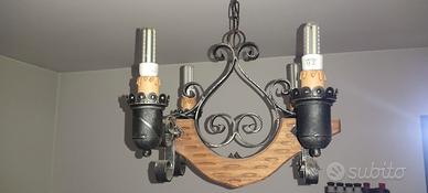 Lampadario legno massello arte povera