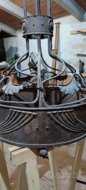 Antico lampadario liberty in ferro battuto altezza 105 cm diametro 55 cm