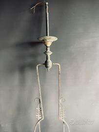 Raro, meraviglioso e antico lampadario stile liberty fine 800, originariamente a gas poi elettrificato. # jugendstil# art noveau. Realizzato in ottone. Misure h 110cm. Privo del vetro e con tracce di restauro.