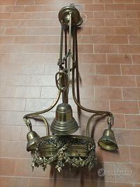 Splendido lampadario Liberty originale, completo di bocce in vetro. Necessita di un soffitto molto alto perchè ha l'asta centrale che lo rende molto lungo. Ideale per salone o albergo o esposizione. Era in una sala alta 3.30 m. Vendo per cambio casa. Purtroppo non riesco più a utilizzarlo per questo motivo. Ritiro a mano. Non spedisco perchè troppo rischioso