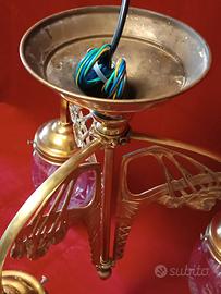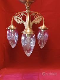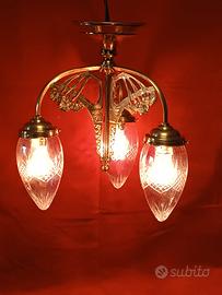 Lampadario liberty in ottone con vetri molati impianto elettrico e portalampade nuovi prezzo trattabile.