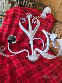 Lampadario antico pitturato lilla