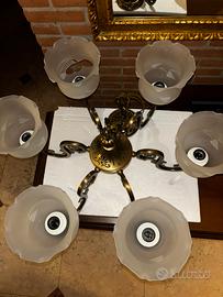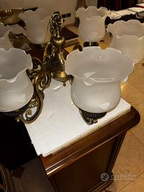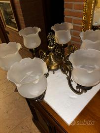 Stupendo lampadario acquistato da Fumagalli lampadari viale Italia 8 Corsico ( Mi) e pagato euro 950. In ottone pieno lavorato e sei campanule smontabili. Catena di sostegno accorciabile ed allungabile a piacere e borchia superiore.