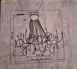 Lampadario modello BEBAL I 5 della collezione 2011. Disegnato da "Lucifero Illuminazione" fondata nel 1990, dalla mente creativa di Roberto Cutuli e dall'ingegno costruttivo di Franco Tamion. Ogni pezzo, unico nel suo genere, combina creatività e funzionalità riflettendo un connubio tra arte e design. La base è in rame cromato color acciaio, gli steli sono modellabili. Il trasformatore toroidale è inserito nella base. Usato in una boutique di abbigliamento. Per via della delicatezza del prodotto si propone un ritiro a mano presso una località concordata con il compratore.