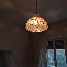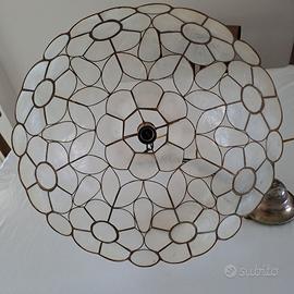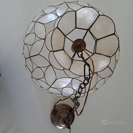 Vendo lampadario con telaio e catenella in ottone e pareti di madreperla. Diametro 41 cm. Non ha danni, come in foto.