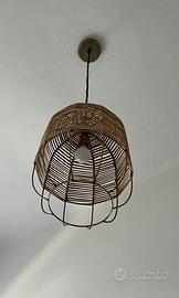 Vendo lampadario di Maisons du Monde in metallo e vimini. Attacco lampadina modello E14. Dimensioni 33cm altezza x 23cm diametro. Attacco a soffitto, cavo e lampadina inclusi.