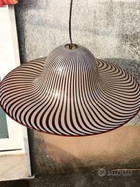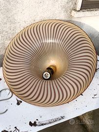 magnifico lampadario in vetro con lavorazione a spirale marrone di diametro 60 cm e spessore 1 cm di grande effetto,con bordatura di altra tonalita'.peso 3/4 kg.