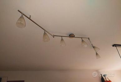 Lampadario da soffitto o parete. Con 6 luci orientabili. Telaio in acciaio. Cupole in vetro bianco opaco satinato. Si utilizzano i led mod. G9, regalo qualche led nuovo
