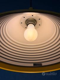 • Caratteristiche: Metallo laccato giallo all'esterno, interno bianco con la tipica fresatura concentrica "a gradini" per una diffusione ottimale e morbida della luce.