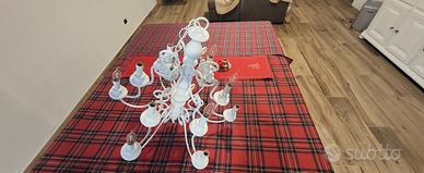 Vendo Lampadario 8+6 lampadine su due file doppia accensione stile retrò in ferro/legno bianco.