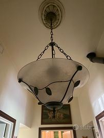 Lampadario stile antico in vetro e ferro battuto