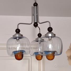 vendo lampadario vintage in vetro soffiato e metallo Mazzega anni 60 lunghezza 76 x 50 larghezza