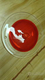 lampadario Mazzega designer Gino Vistosi, anni 60, attacco lampade e14, 4 punti luce, dischi rossi in vetro di Murano aventi diametro cm 14 . In buono stato di conservazione. Manca un disco di vetro comunque reperibile sul web. Impercettibile la sua mancanza una volta appeso. Si assicura un imballo eccellente con dischi imballati singolarmente con materiale antiurto.