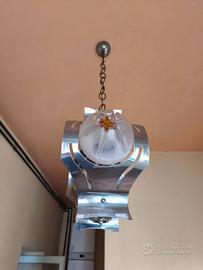 Lampadario Mazzega 2 luci in vetro di Murano e acciaio