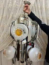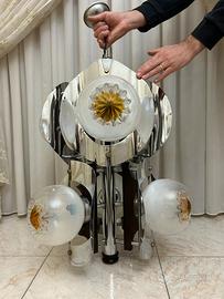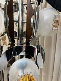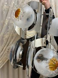 Questo lampadario italiano di Mazzega è un esempio straordinario della fusione di arte, design e tecnologia che ha definito l'era Space Age. Questo lampadario è un simbolo dell'innovativo artigianato italiano, che fonde materiali moderni con le tradizionali tecniche di lavorazione del vetro dell'isola di Murano. Il telaio e gli elementi strutturali del lampadario sono realizzati in acciaio cromato di alta qualità. Il lampadario è caratterizzato da diffusori in vetro di Murano, che sono il fulcro del design. Questi pezzi di vetro sono soffiati a mano sull'isola di Murano. Il lampadario incarna l'etica del design della Space Age, caratterizzata da un aspetto futuristico e all'avanguardia. La struttura in acciaio cromato è lucidata a specchio, riflettendo l'ambiente circostante e aggiungendo un senso di glamour futuristico al lampadario. Mazzega è una rinomata azienda italiana di illuminazione con sede a Murano, Venezia, nota per la lavorazione del vetro di alta qualità e per i suoi design innovativi. Un lampadario italiano di Mazzega Space Age degli anni '70 in acciaio cromato e vetro di Murano non è solo una fonte di illuminazione, ma un'opera d'arte che racchiude lo spirito della sua epoca. Attenzione guardare attentamente foto poiché essendo un lampadario datato le sue piccole usurate sono state lasciate nella sua originalità per renderla ancora più autentico. Lampada rara composta da da 6 luci. Misure altezza 70cm larghezza 38cm profondità 38cm peso 5,5kg. Attenzione le spese di spedizione costa un po’ di più poiché preferisco separare la struttura del lampadario dalle lampade.