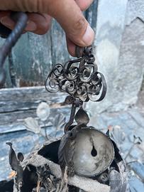 Lampadario stile castello medievale, tutto impolverato, catenella lunga 1 m, diametro 60, circa materiale metallo che sembra ferro battuto. Accetto offerte