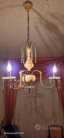 Lampadario tre luci in metallo e cristallo con 2 applique coordinate, il tutto con vernice antichizzata fatta fare da me in fabbrica di lampadari prima del ritiro quando li acquistai. il tutto è in ottime condizioni tranne qualche cristallo pendente che manca ma facilmente reperibile in negozi . Vendo per cambio arredamento.