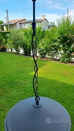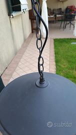 Lampadario in metallo per portico o taverna in metallo antracite opaco e piatto smaltato bianco. Attacco E14, piatto diametro 38 cm e altezza massima 72 accorciabile legando gli anelli della catena. Acquistato da Guerra Lampadari a più di 100 euro