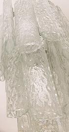 Lampadario a sospensione Mid-Century in Vetro di Murano attribuito a Toni Zuccheri per Venini, anni '60, modello TRONCHI. 18 elementi tubolari in vetro soffiato, sezione a mandorla, su due livelli, 4 luci. Struttura metallica. Fili elettrici originali ma ancora perfettamente funzionante. Ottime condizioni con qualche segno del tempo sul coprifili. Misure: Singolo elemento 25 h H totale 74.5 H coprifili e stelo 37 Diametro 25 Prezzo speciale di 399 Euro per ritiro di persona , Milano città zona Buenos Aires, spedizione assicurata possibile con TuttoSubito a 450 Euro. Lampadario Vintage, Lampadario Mid Century, Murano Glass Lamp, Lampadario Toni Zuccheri, Lampada di Design, Illuminazione anni '60, Lampadario Design anni '60